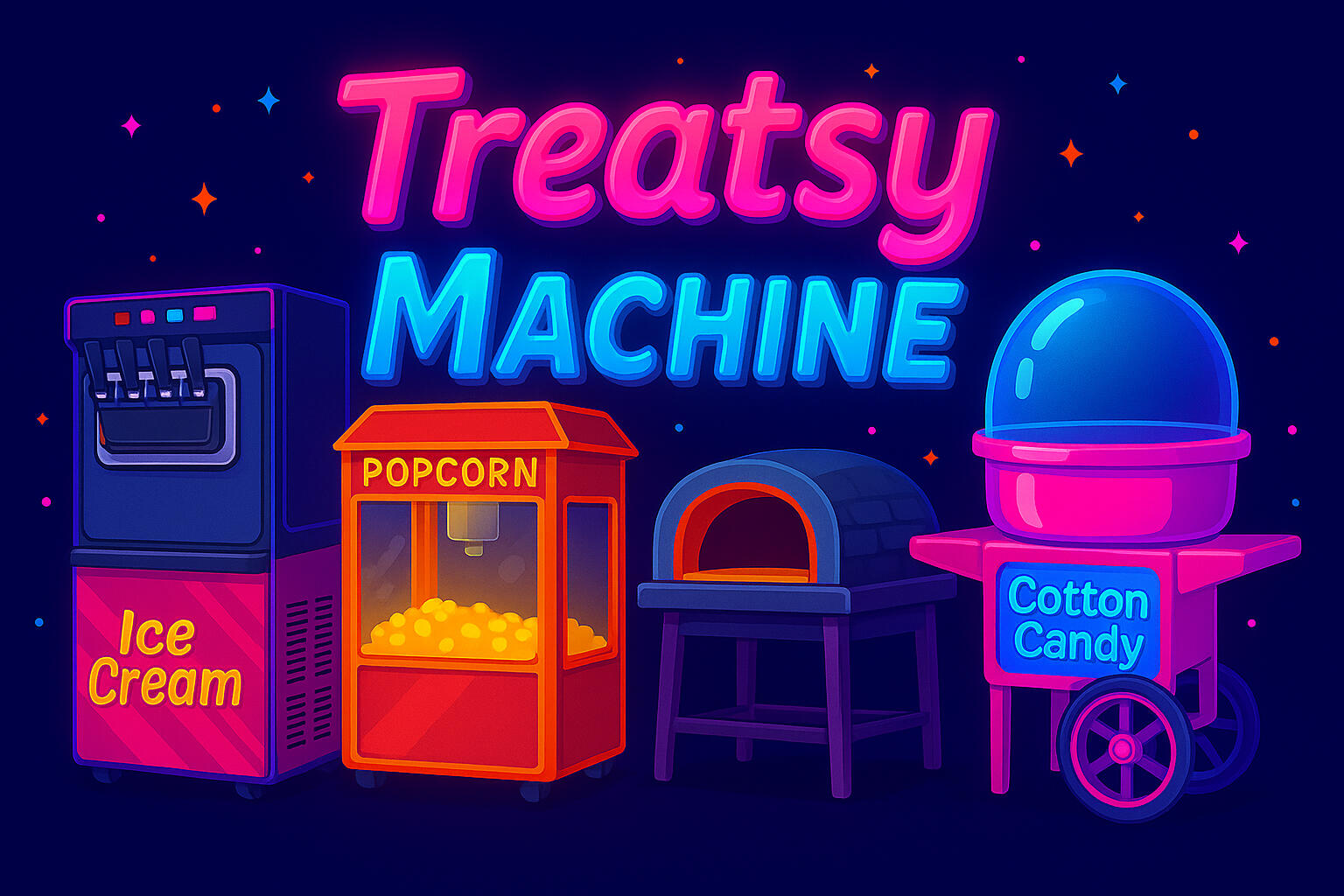 Treatsy Hire adds a fun and flavourful twist to your party with top-quality popcorn, candy floss, and ice cream machines. Perfect for birthdays, weddings, school events and more – our machines are easy to use, look great, and guaranteed to impress.Tasty treats, reliable service, and a touch of magic.